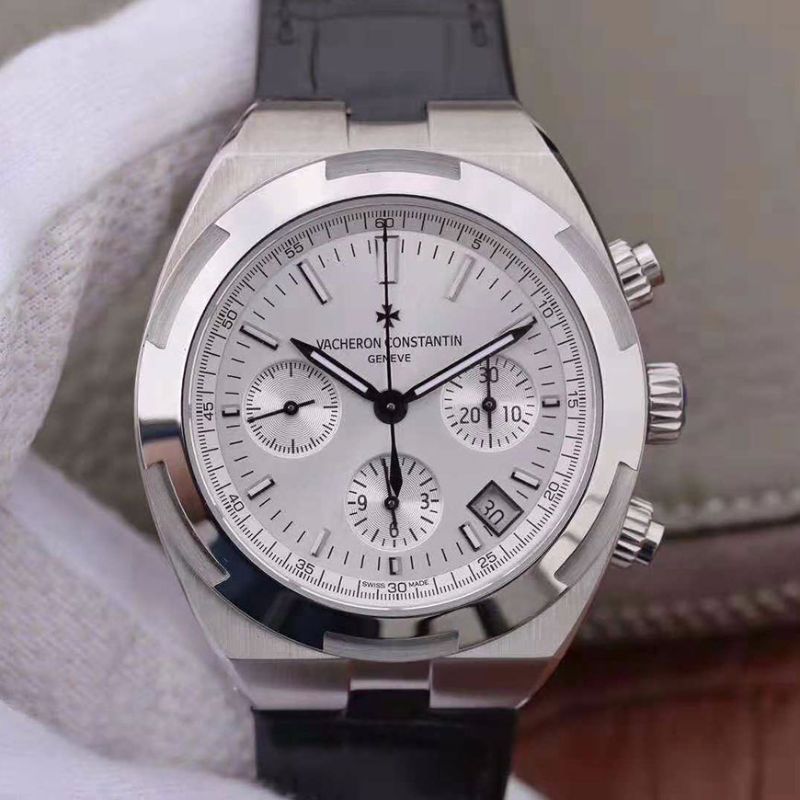 316L stainless steel case diameter 42.5mm, silver dial, with velvety smooth edges and snail-shaped timer, Swiss ETA7750 Automatic Chronograph Movement, swing frequency 28800 times/hour, 52 hours power reserve. Vacheron Constantin 5500V/110A-B075 Replica Watches 18K gold hour markers, hour and minute hands with white luminous coating, date display between 4 o'clock and 5 o'clock. The brand new replaceable strap system, you only need to flip a small slide bar between the strap and the lugs to replace the strap, truly a 1:1 replica. Black leather strap with stainless steel folding buckle. The curved appearance of the case ensures that it is seamlessly connected to the bracelet or strap, and the craftsmanship is precise and aesthetic. The six-sided three-dimensional bezel design and the cylindrical crown with groove design also echo the brand's design aesthetics. AAA Replica Vacheron Constantin Overseas Chronograph 5500V/110A-B075 JJ Factory Leather Strap Mens Watch