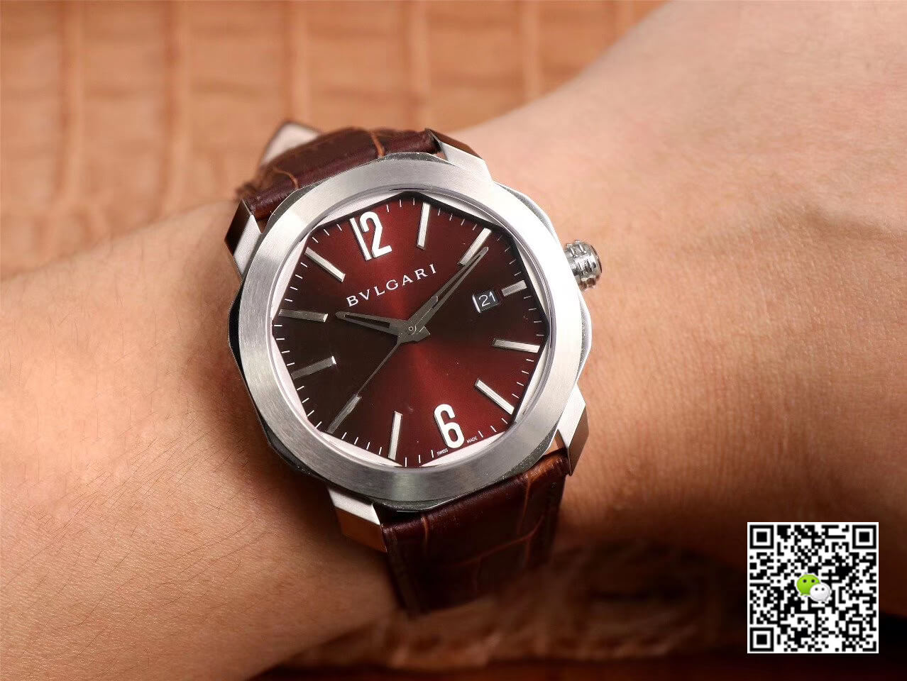 Octo highlights bold design and the highest precision, surrounded by simple and exquisite Italian creativity and Swiss craftsmanship of watchmaking art. In the 15th and 16th centuries, Italian artists such as Leonardo Da Vinci excelled in creating innovative and timelessly beautiful masterpieces. Driven by the same genius, Octo combines a unique octagonal design with an excellent mechanism. OctoRoma brings the purity of the form of the octagon to an unprecedented limit, introducing a powerful and innovative design. This Bvlgari 102705 Replica Watches is known for its undeniable style, and the linearity of its silhouette and measured aesthetics are extremely modern. With Swiss 9015 mechanical movement, 41 mm stainless steel case, transparent case back, crown inlaid with ceramic, dark brown polished lacquered dial, hand-labeled, brown leather strap and stainless steel folding clasp.