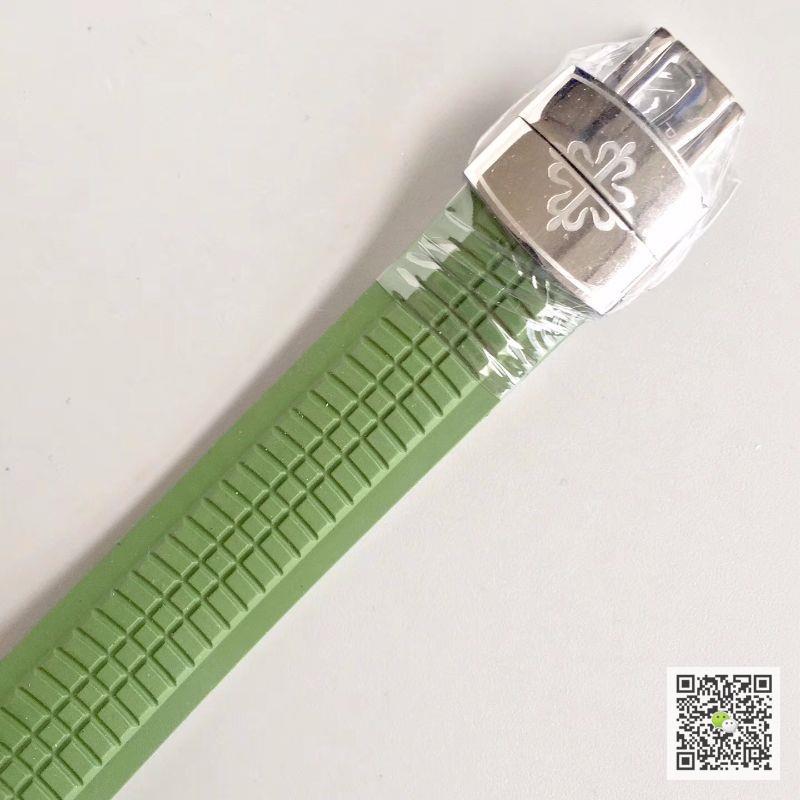 Replica watches. Whether it is formal business or sports and leisure, it can be worn and perfectly controlled in a variety of styles. The only watch in all PatekPhilippe collections with a rubber strap, which is stress-free for different types of water sports. The dial looks very unique, similar to a square but its water chestnuts are very rounded, a bit similar to the Nautilus series. The top of the case is treated with a brushed process, and the rounded sides are polished to an almost mirror-like effect. The genuine CAL.324SC movement is modified with the West Rail Cheng 9015 movement, which is the same as the movement of the Nautilus. The movement balance wheel is at 6 o'clock.