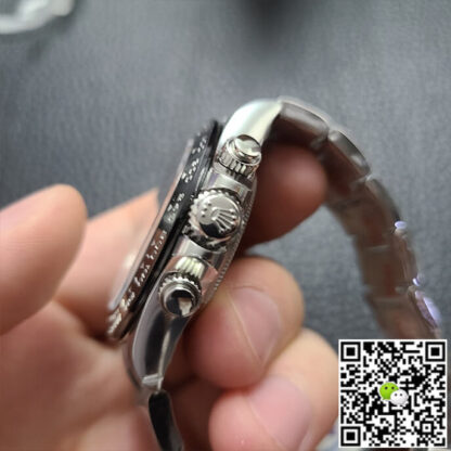 The clean factory replica watch Rolex Daytona third generation M116500LN-0001 has a diameter of 40 mm, and its functions are consistent with the original. Adopting advanced SWISS Cal.4130 Movement, the time is precise and the power reserve time is long. The scale color of the bezel is close to the original one, and has a certain degree of wear resistance. The connection between the case and the strap is naturally tight, and there will be no looseness. The font printing is full and full of three-dimensional effect, and the nails of the time scale are rounded and polished. The caseback is finely polished and the brand logo and some codes are engraved on the back. Produced by the Clean factory, the quality is trustworthy. AAA Replica Rolex Cosmograph Daytona M116500LN-0001 Clean Factory V3 Black Bezel Mens Watch
