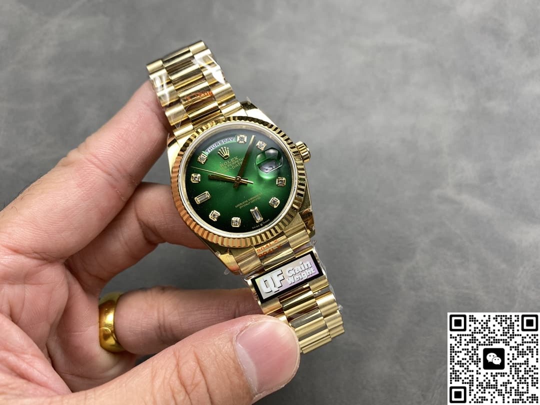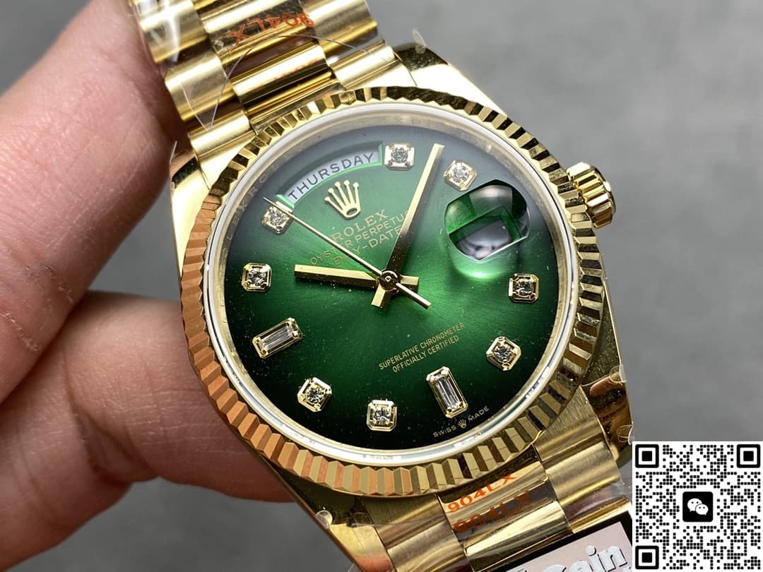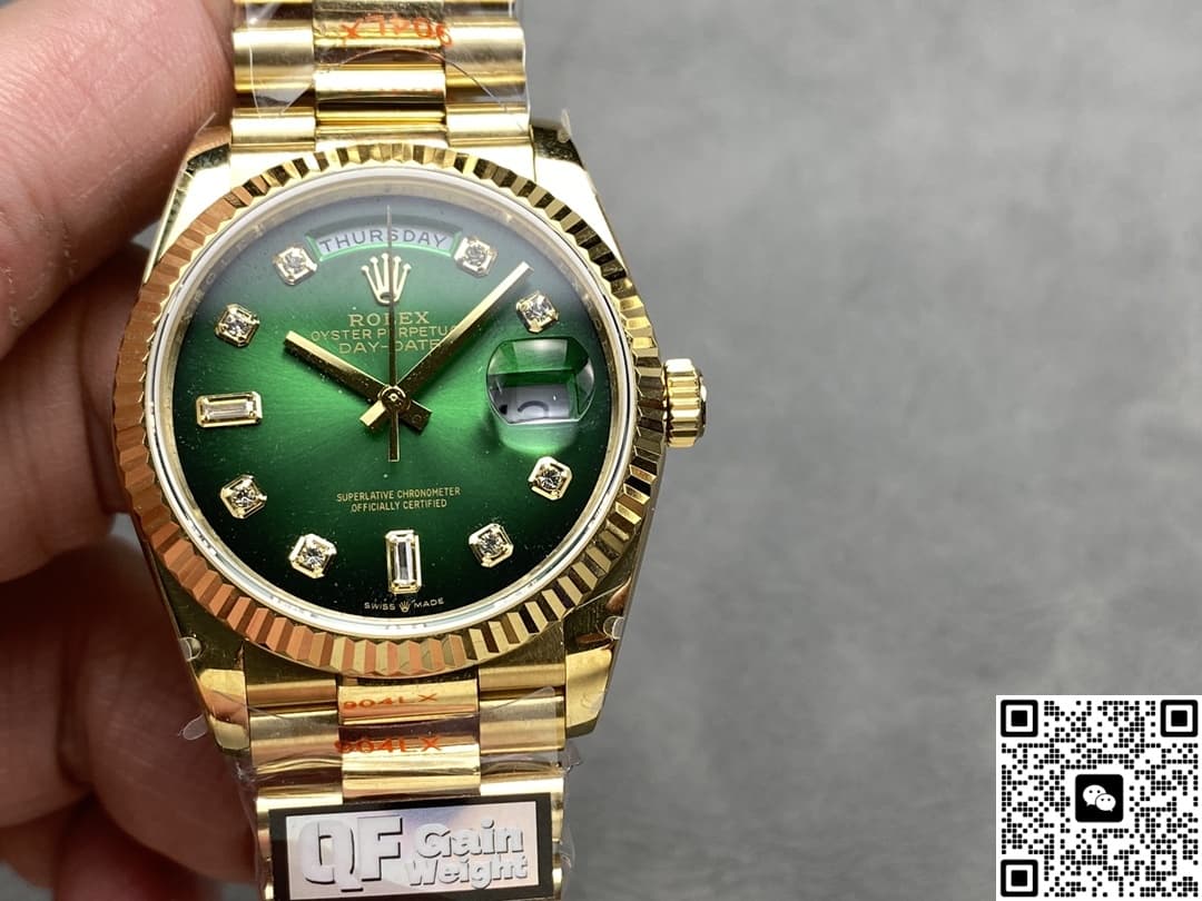 The AAA Replica Rolex DayDate m128238-0069 QF Factory Ladies Watch 36mm is a highly sought-after product in the replica watch market. It is very attractive because it accurately reproduces the details of the original watch, and the price is more affordable. The so-called replica watches are not only very close to the real watch in appearance, but also the quality of the internal movement is very stable, the probability of repair is very low, and the travel time is also very accurate. As far as replica watches are concerned, manufacturers hope to restore the quality of genuine watches. In addition to classics, the craftsmanship of watches must also be extreme. Therefore, both the manufacturing process and the process materials used in replica watches are top-level materials and processes.