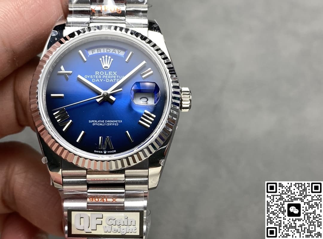The AAA Replica Rolex DayDate m128239-0063 QF Factory Mens Watch 36MM is a highly sought-after product in the replica watch market. It is very attractive because it accurately reproduces the details of the original watch, and the price is more affordable. The so-called replica watches are not only very close to the real watch in appearance, but also the quality of the internal movement is very stable, the probability of repair is very low, and the travel time is also very accurate. As far as replica watches are concerned, manufacturers hope to restore the quality of genuine watches. In addition to classics, the craftsmanship of watches must also be extreme. Therefore, both the manufacturing process and the process materials used in replica watches are top-level materials and processes.